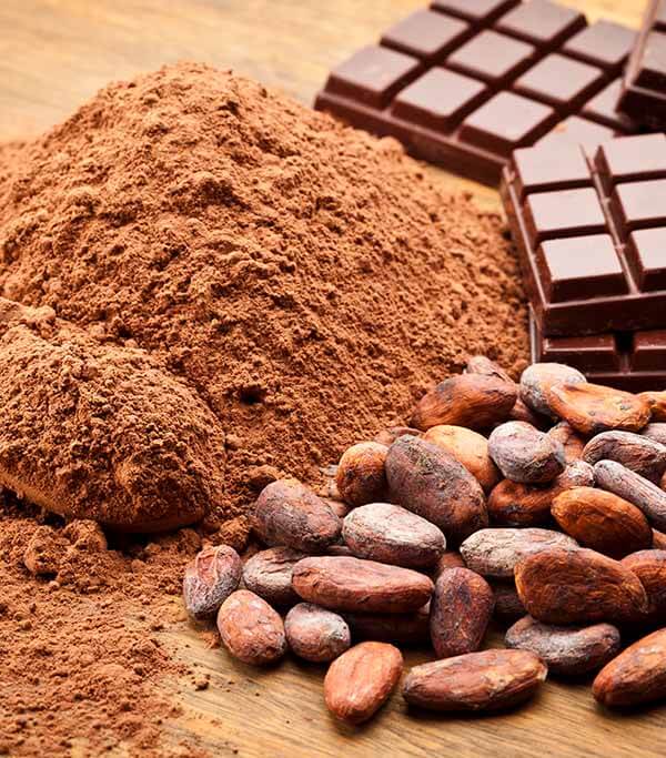 Cocoa powder is an unsweetened powder produced by crushing the cocoa beans extracted from fruits of the cocoa tree. The chocolate liquor is pressed to remove cocoa butter and the residual cocoa solids are then processed to create fine unsweetened cocoa powder. Its rich taste and aroma make it a good flavouring agent useful for preparing beverages, biscuits, cakes, and ice creams